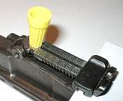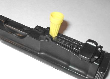 Balance some sort of spacer on top of the sight leaf. There's that old plastic wire nut again.