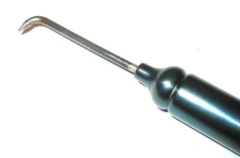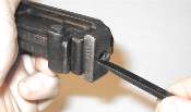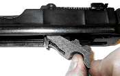 Hook the tool into the hole, lift slightly and pull aft (toward the back of the gun).