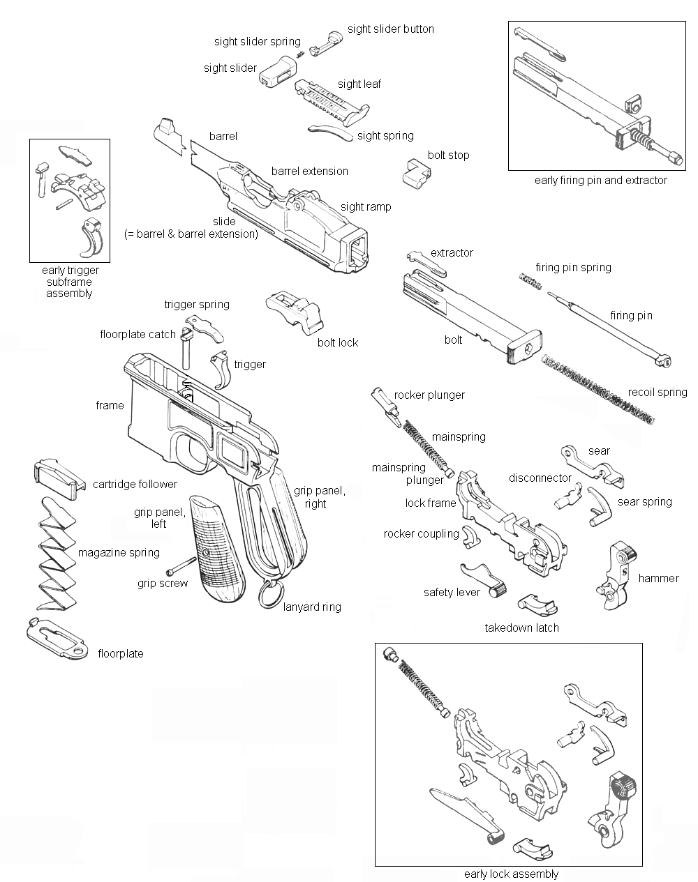The vast majority of semiauto C-96s had the parts shown in the main explosion. Schnellfeuers were substantially different.