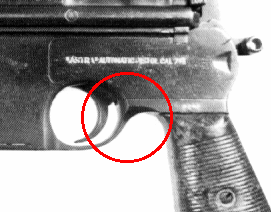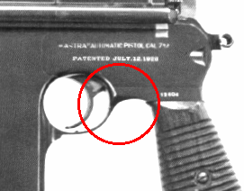 Hmmm. On the earliest guns, the frame area aft of the triggerguard had a generous blend or radius. It doesn't show in the above photos, of course, but the radii were symmetric - identical on both sides. As production progressed, there was a tendency to decrease the radius, until it was entirely gone by the 30 thousand serial range - the photo of the Model F. That was actually useful on the Model F, as a shaft - part of the cyclic rate reduction mechanism - extended through the frame, with the ends visible from both sides. But the serial number couldn't be stamped on the end of the shaft, so it had to move forward a bit. With no frame radius there, that was no problem - plenty of room for a serial number to crowd forward.