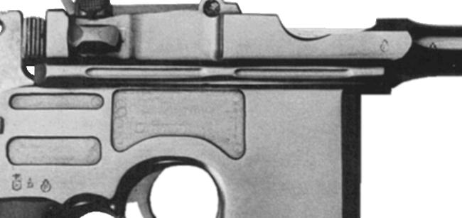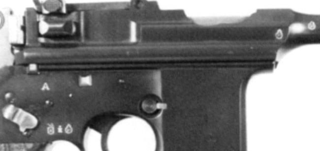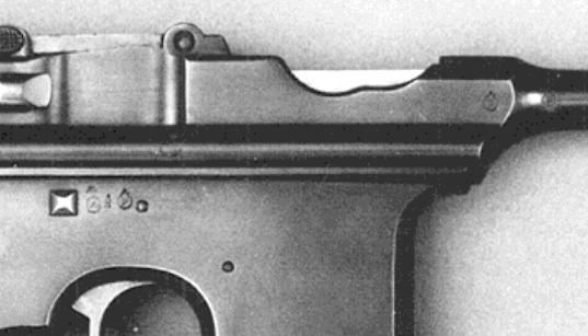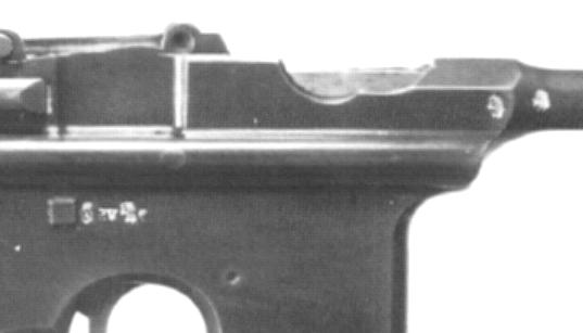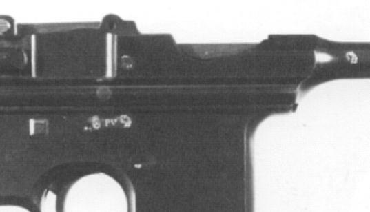 So, just when did the Eibar proof house switch from the older stamps to the newer ones? It looks like the big year was 1928. Guns proofed in 1928 might have either the older or newer stamps. Of course dating the older stamps can be an exercise, as they don't have a date code. Other information such as the serial number of the gun must be used to estimate the manufacture date, which puts limits on the proofing date. Obviously, errors are possible. But so far, 1928 is my best guess for the transition date. Everything above is general for Spanish handguns, and applies to Beistegui Hermanos guns as well as Unceta. Now for photos of actual specimens. I have blown up most of the photos so that they're of uniform scale. The penalty for that is that some of them get fuzzy. But since all we're interested in is proof marks, the fuzziness of other features isn't a huge drawback. Proofs on the Astra 900 Series Astras were generally proofed. Some strange things happened during the Spanish Civil War, when significant numbers of guns were either stolen or "stolen" while in storage, and just who did the stealing rather depended on exactly who - the Republicans, the Nationalists, or the (for a while) independent Basque government - controlled Guernica at the time. Those guns may or may not be proofed. And there was more than a bit of outright "requisitioning" going on, starting with the Republicans about 1931, and continuing until after the end of the war in 1939. And sometimes guns shipped directly to a Spanish military or police organization weren't proofed, perhaps on the theory that the military would do its own testing of the product before acceptance, something not practical for civilian customers. So, with the understanding that sometimes there were no proofs at all, the usual places for proof stamps on 900 Series guns were - • A pair of single proofs on the right side of the barrel and barrel extension, on either side of the joint between the two. In contrast with standard Mauser practice, these were two separate parts on 900 Series Astras. • A triad on the right side of the frame. The exact location of the triad varied by model and production date. The Eibar proof house showed a preference for stamps on the left sides of guns, all things being equal. But on the 900 Series Astras things weren't equal - most of the left side of the frame wasn't frame, but a sideplate. So on the 900 Series the proof house put the stamps on the right side. It appears that after World War 2 the proof house went to more effort to standardize, and stamp all guns on the left side - and sure enough, places for the stamps were found on the left sides of the last 900 Series guns. But earlier stamps were all on the right side. Here is a prototype Model 900, serial number 4, after Antaris. The triad is just forward of the trigger pin. It's a bit hard to make out the first stamp of the triad, but it's STAMP 3, the crowned shield with saltire couped, followed by P.V., with the lion rampant bringing up the rear. In other words, the standard "early" triad. The lion rampant is also on the barrel, just forward of the chamber area. On the barrel extension, the lion rampant is much further aft than seen on production specimens - it's just forward of the sight pivot. This gun is stamped 1927 on the frame, hidden under the left grip panel.