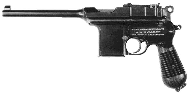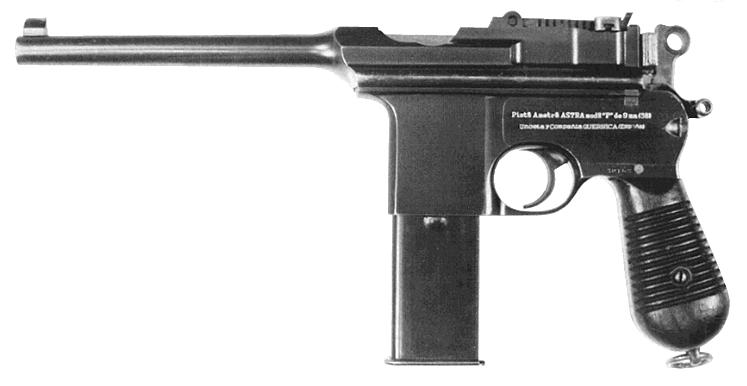 Of course at that time the Oberndorf factory wasn't cranking out Prewar Commercials or M-30s. Its C-96 output consisted entirely of Bolos. The full-size Mausers and the Astra were definitely more formidable-looking weapons than the pipsqueak Bolo.